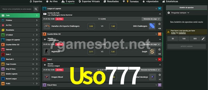 A aposta Uso777 oferece aos jogadores a experiência mais conveniente de apostas em eSports!